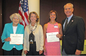 On May 14th, the Fort Bend Chapter Daughters of the American Revolution (DAR) hosted a Community Service Awards program honoring Virginia Davis Scarborough and Renee Barcak Butler. The Community Service Awards are an opportunity for chapters and states to recognize worthy individuals in their communities for unpaid voluntary achievements in cultural, educational, humanitarian, patriotic, historical, citizenship or environmental conservation endeavors. Recipients must have contributed to the community in an outstanding manner through voluntary heroic, civic, benevolent service or by organizing or participating in community activities.