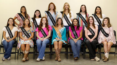 This year’s candidates are (front row): Rianna Crocker of Fulshear High School, Bailey Helmcamp of Foster High School, Brooke Vaughn of Foster High School, 2021 Fort Bend County Fair Queen Meadow Votis, Kilee Reyna of George Ranch High School, Estella Westermann of Travis High School, Cassidy Watts of Stephen F. Austin High School, (back row ) Madison Sifuentes of Travis High School, Hailey Tollett of Harmony School of Innovation – Sugar Land, Tristen Drury of Needville High School, Madison Malek of Needville High School, Skylin Bromonsky of Needville High School and Mallory Rodriguez of Lamar Consolidated High School.