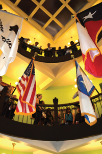 The Lamar Consolidated Varsity Choir participated in the ceremony with patriot songs including Texas, Our Texas.