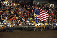 Melissa Navarre carried the American flag before a packed house at the 2013 Fort Bend County Fair. Photo by Bill Robertson – Magana Media.